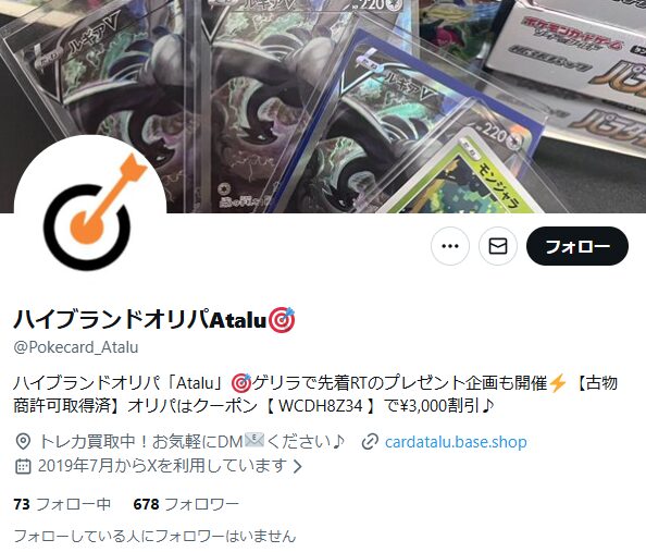 ATALU(アタル)のオリパの口コミ・評判をXで調査したところ、以下のようなポジティブな口コミが見られました。
