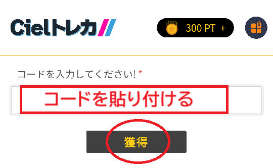 Cielトレカの招待コードは、新規登録時に入力すると、招待した人もされた人も300ポイントが付与される仕組みです。