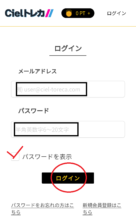 - パスワード(半角英数6文字~20文字)