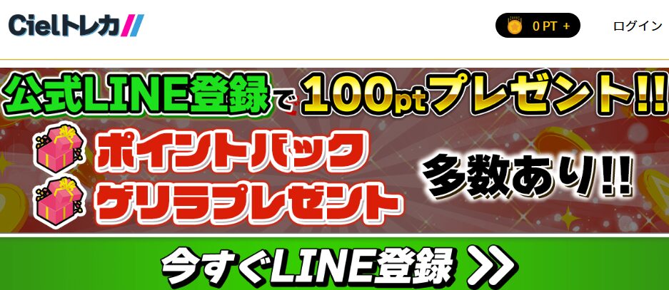 Cielトレカは招待コード+LINE登録すると、400ptが無料でもらえます。