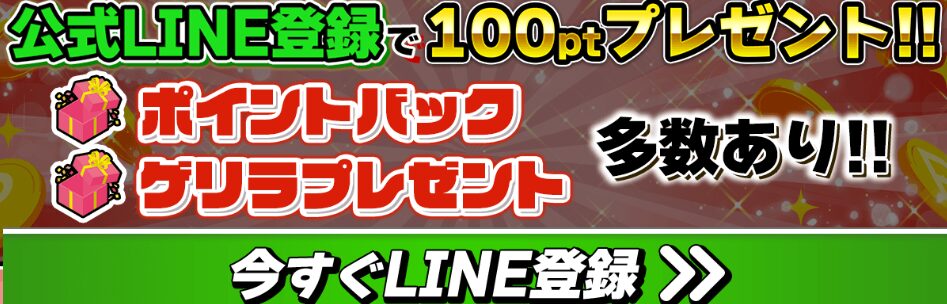 - LINE登録キャンペーンで100pt獲得