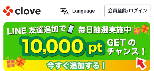 - Xで「#Clove当選報告」を付けて投稿:Xに画像付きで投稿すると1,000ptもらえるチャンス