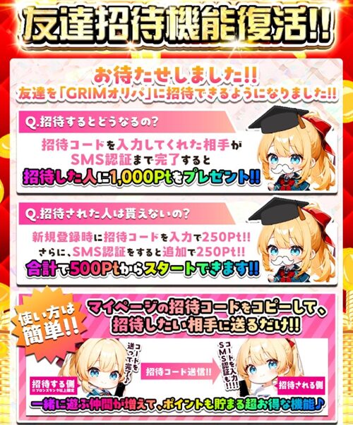 現在、GRIMオリパには招待コード制度は期間限定で復活中!
