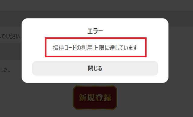 入力時にエラーメッセージが出る場合、その招待コードが月間や累計の利用上限数に達している可能性が高いです。