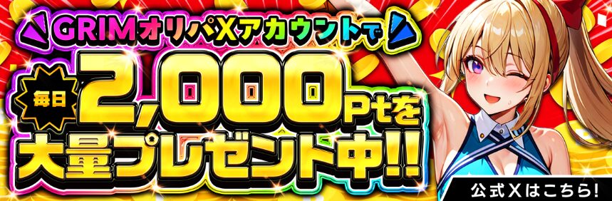 「#GRIMオリパ」と写真投稿で500ptが抽選で当たる 常設 写真付き報告が対象