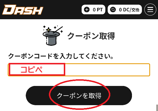 オリパDASHのクーポンは、以下の方法で入手できます。