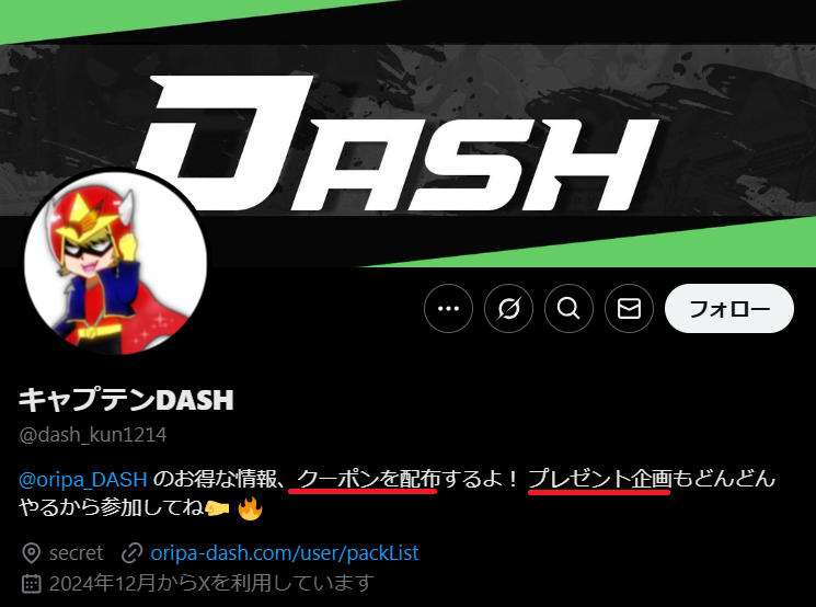 また、「キャプテンDASH」のXアカウントをフォローすると、お得なクーポン情報をゲットできます。