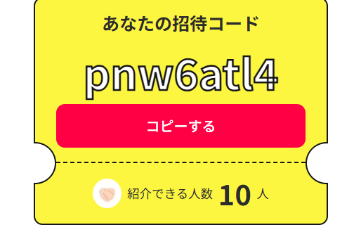 | 当サイトの招待コードを利用 | pnw6atl4(先着順) |
