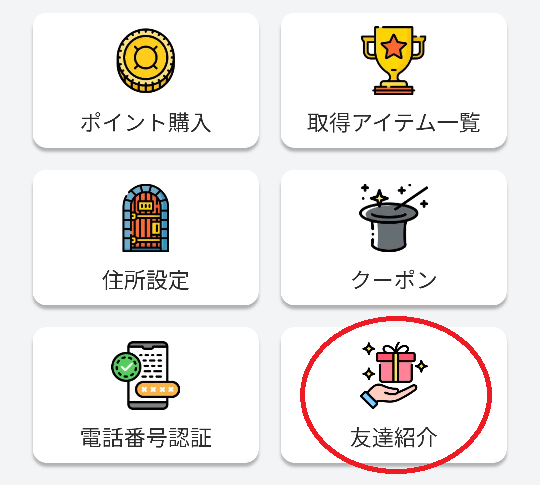 - 友達招待で、招待する側も招待される側も300ptずつもらえる