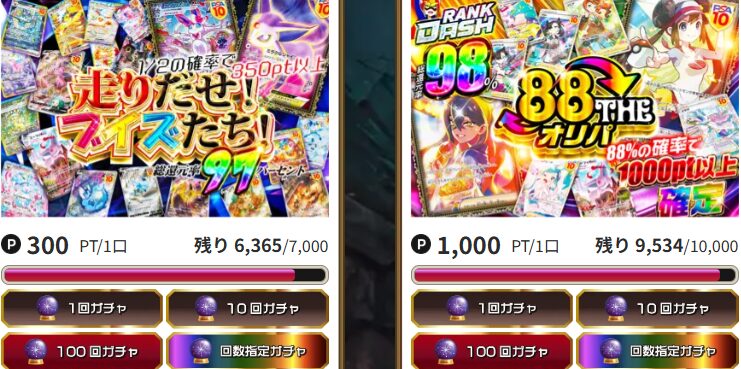 A. オリパDASHのオリパは 総還元率100%以上のものが多い ですが、具体的な当たり確率はガチャごとに異なります。