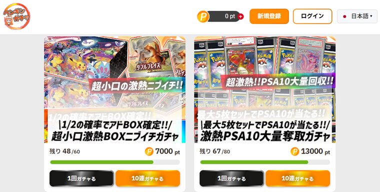 - ログインボーナス(1日最大4回まで引けるポイント大還元ガチャ)と併用する