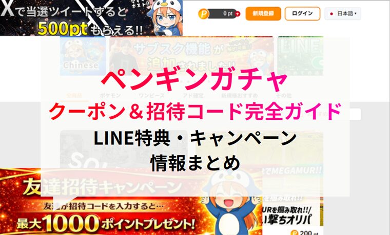 本記事では、最新のペンギンガチャのクーポン情報と、失敗しないペンギンガチャの招待コードの使い方を徹底解説。安全に、そして確実にポイントを獲得する方法をわかりやすくまとめました。