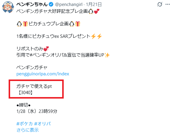ペンギンガチャの場合、公式Xはペンギンちゃん(@penchangirl)というアカウント名で運営しています。