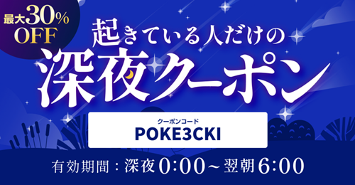 | 深夜クーポン | 最大30%OFF | 0時~朝6時まで使えるクーポン |