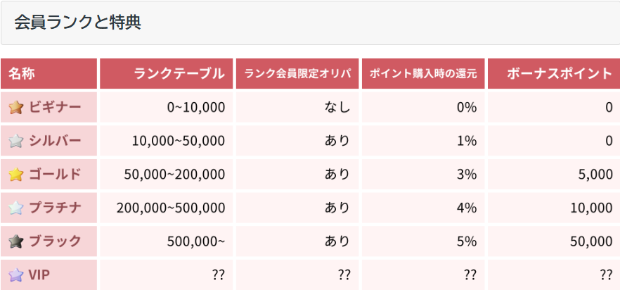 ただし、会員ランクが上がることでポイント購入時の還元率が変わります。
