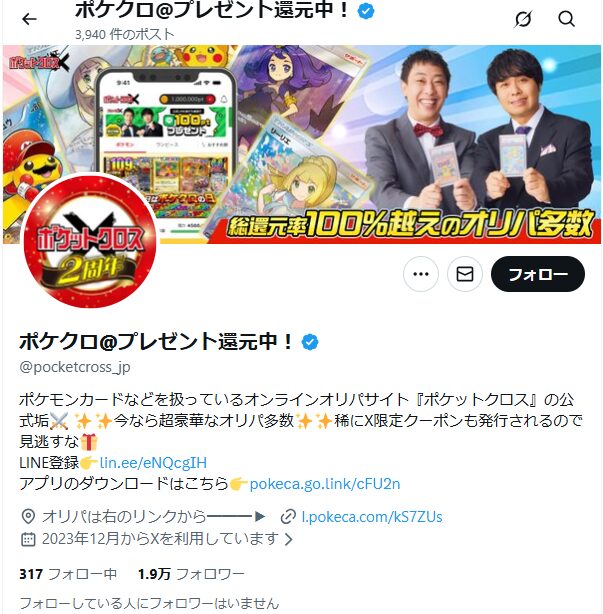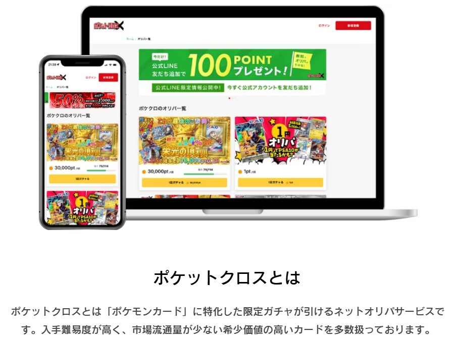 ポケットクロス(ポケクロ)は、オンラインでポケモンカードのオリパ(オリジナルパック)を販売しているショップ。