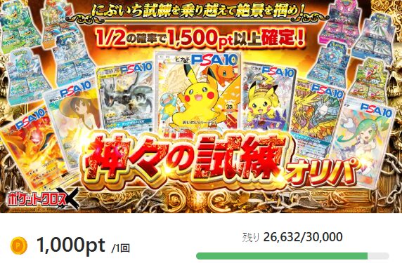 低価格帯でポイント還元狙って、高いポイントのオリパを引くのも良いかもしれません。