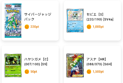ポイント還元率が良くて、演出も楽しいオリパガチャという口コミがありました。