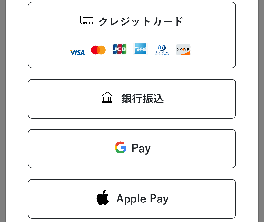 - クレジットカード(VISA/Master/JCB/AMEX/Diners Club/DISCOVER)