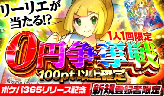 新規登録者限定で1回のみ引ける、リーリエが0円で当たるチャンス | 常時 |