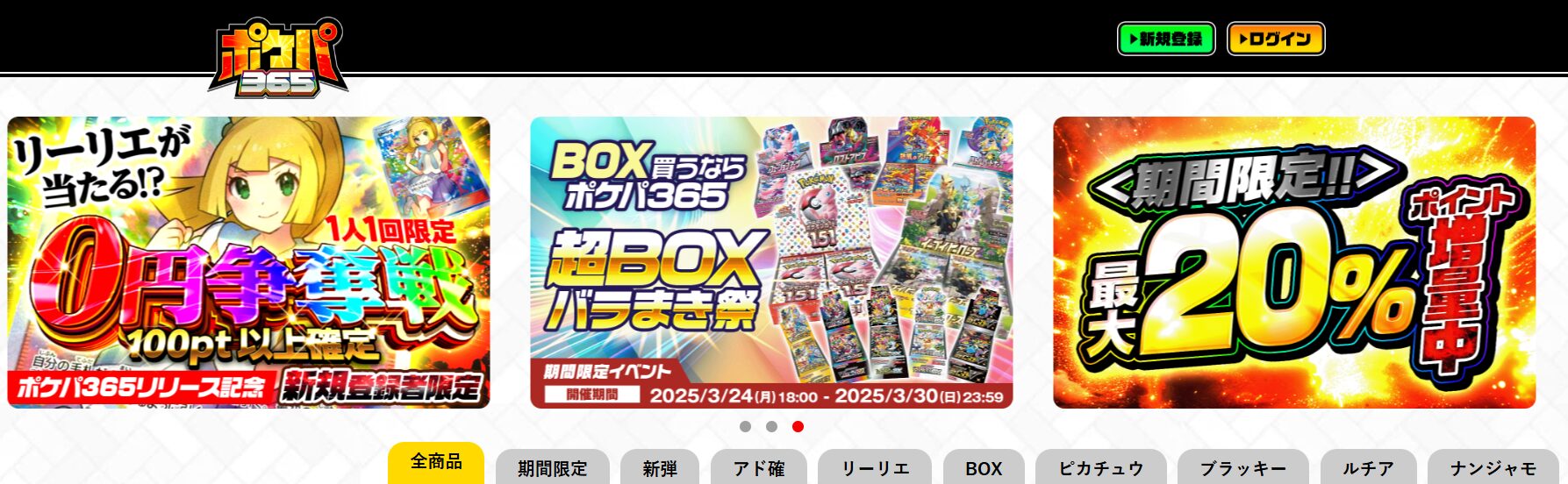 ポケパ365は2025年3月10日にリリースされたポケモンカード専門のオンラインオリパサイトです。