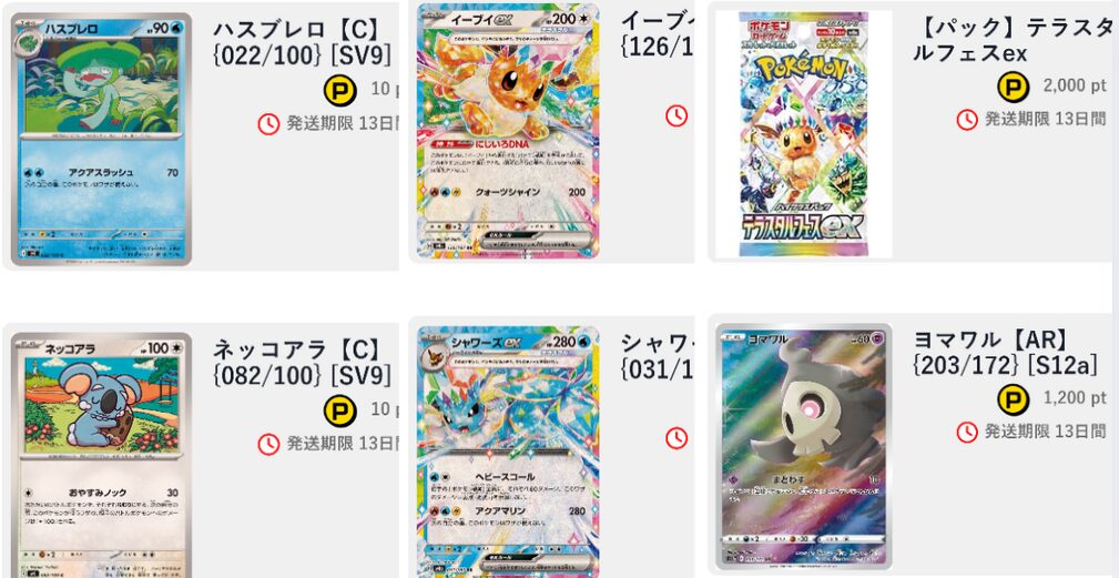 | テラスタルフェスティバルオリパ | 180pt | テラスタルフェスex1パック(B賞) | 2,000pt |