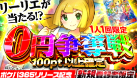 また、「0円争奪戦」ガチャを1回無料で引くことができ、最低でも100ポイントが保証されます。