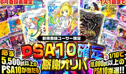 新規登録者限定!5,000ptで必ず5,500pt以上のPSA10が当たる | 先着1,000名限定 |
