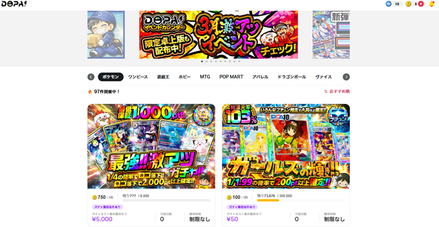 - オンラインオリパはDOPA!等の大手がおすすめ