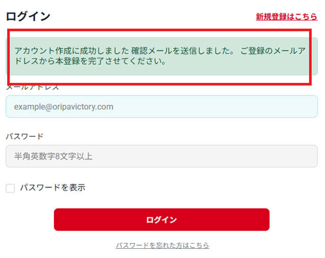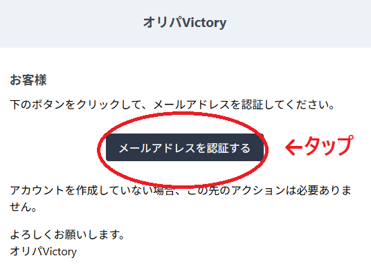 登録したメールアドレスにすぐにオリパビクトリーからメールが届きました。