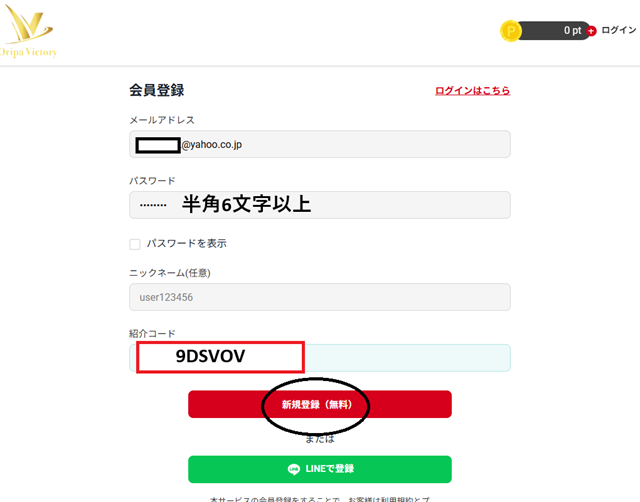登録完了後に入力欄は表示されないため、「後で入れよう」は通用しません。他のオリパサイトでもよくある失敗例なので注意しましょう。