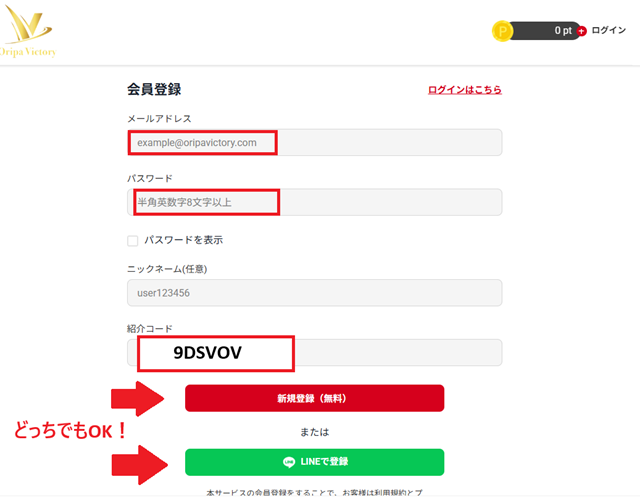 1. オリパVictory公式サイトから新規登録